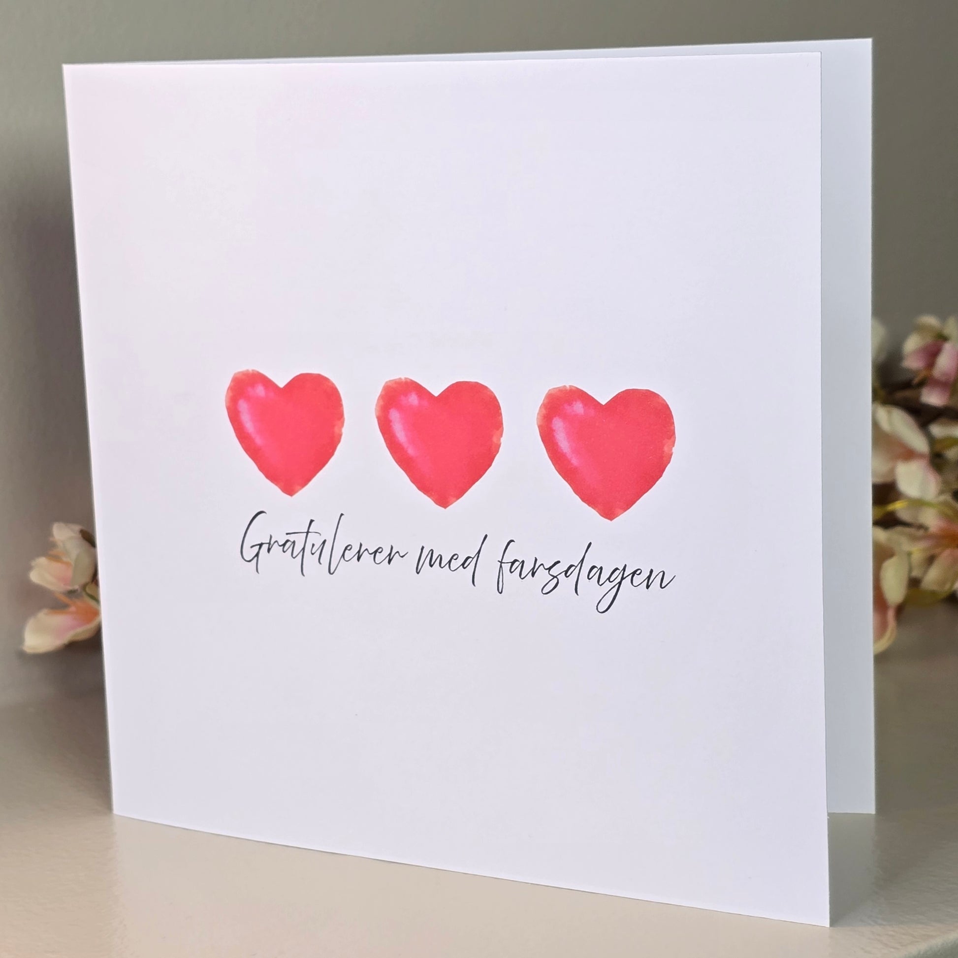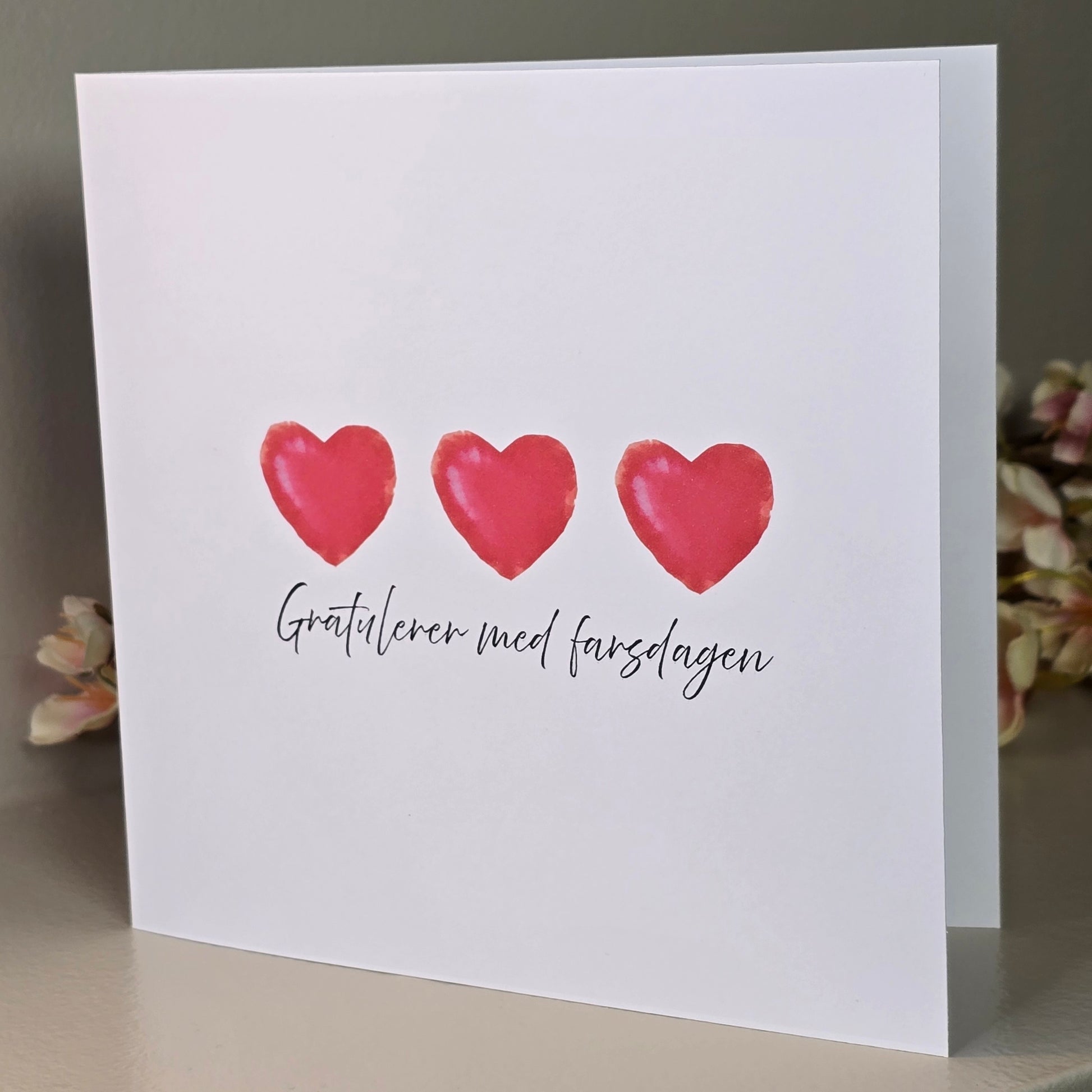 Et koselig farsdagskort med 3 hjerter.