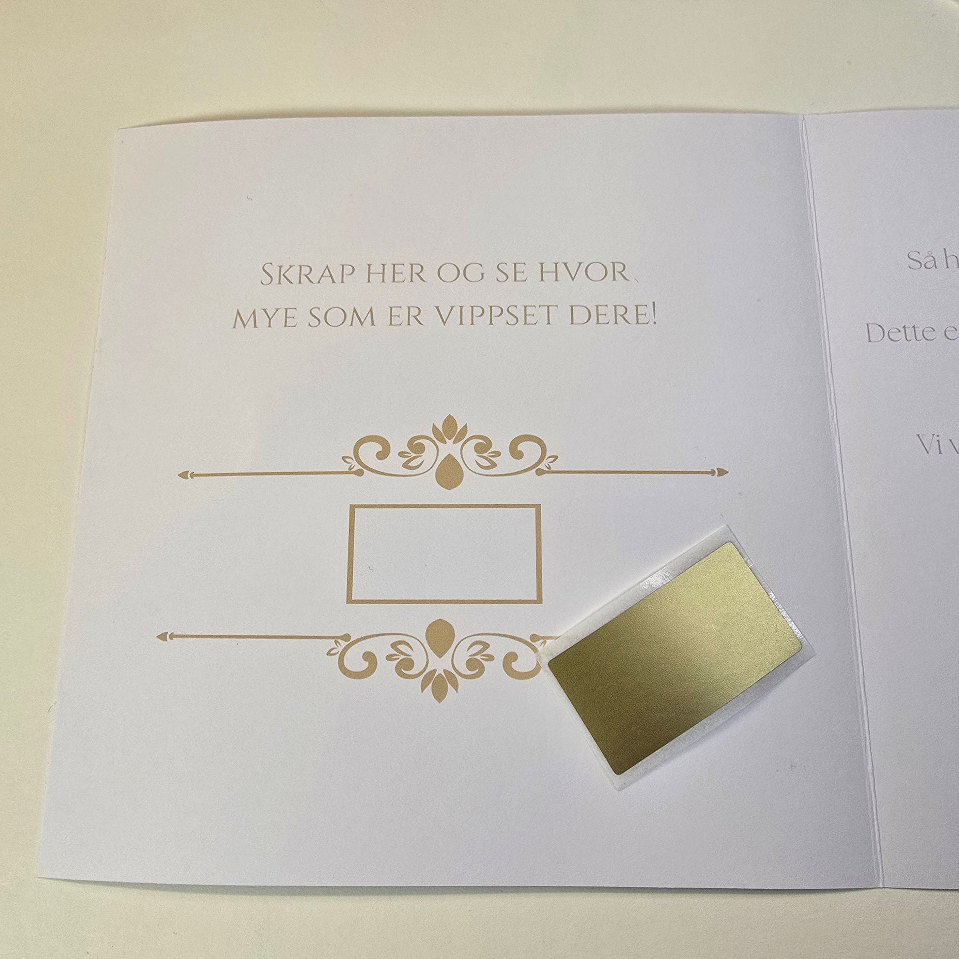 Lekkert pakket inn med premium konvolutt og moro for mottaker å skrape frem hva gaven faktisk var.