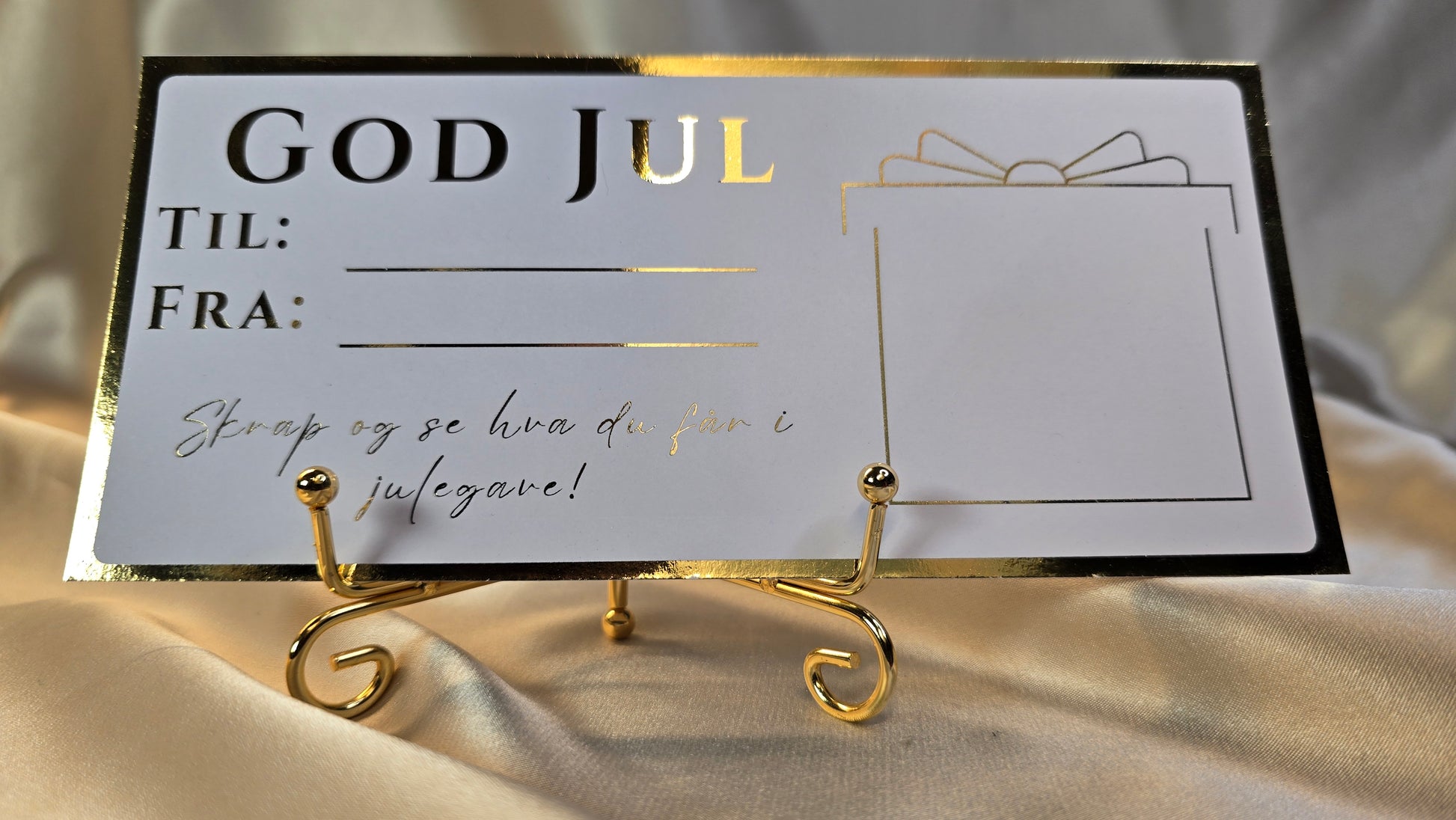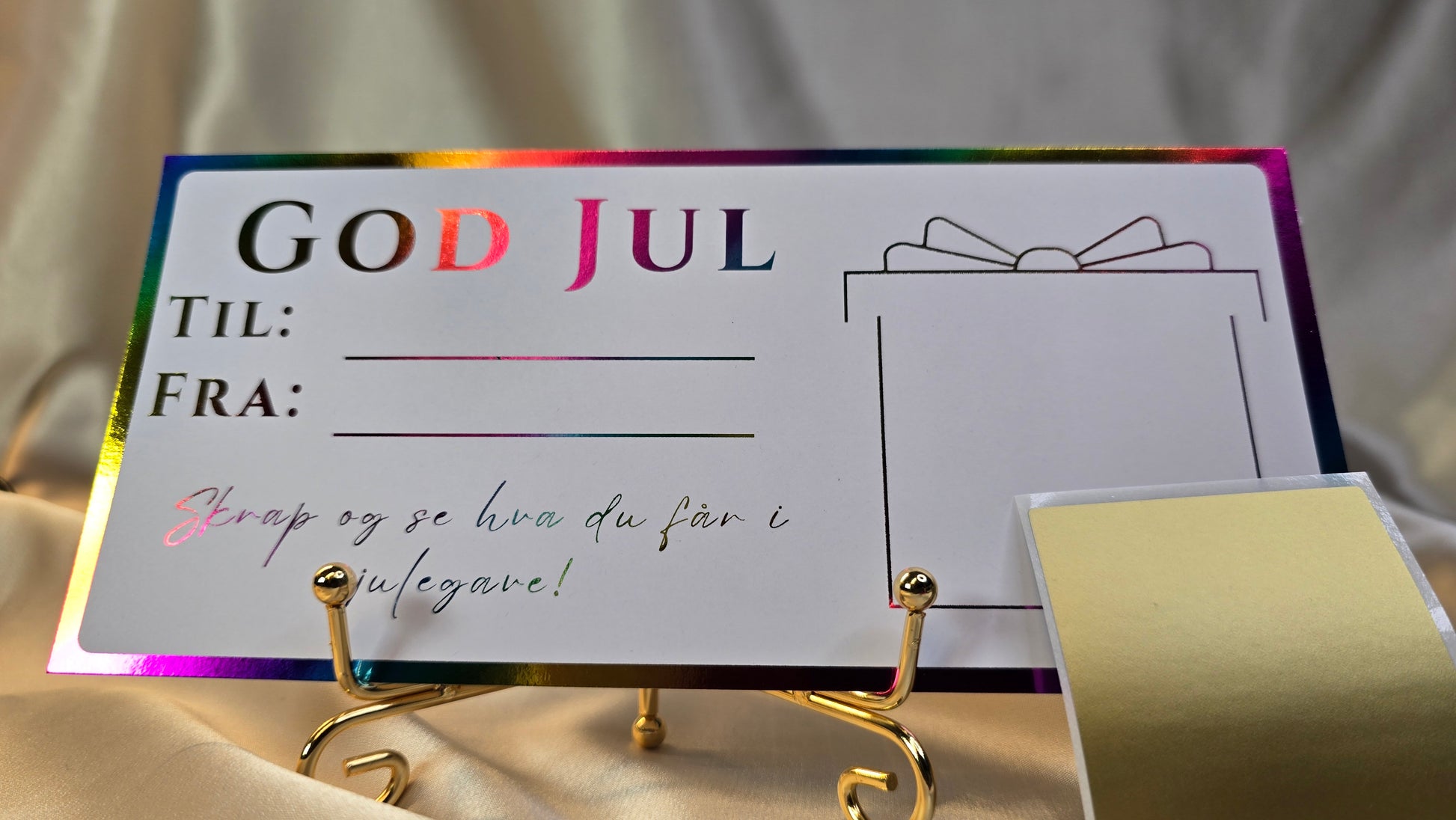 Lekkert pakket inn med premium konvolutt og moro for mottaker å skrape frem hva gaven faktisk var.