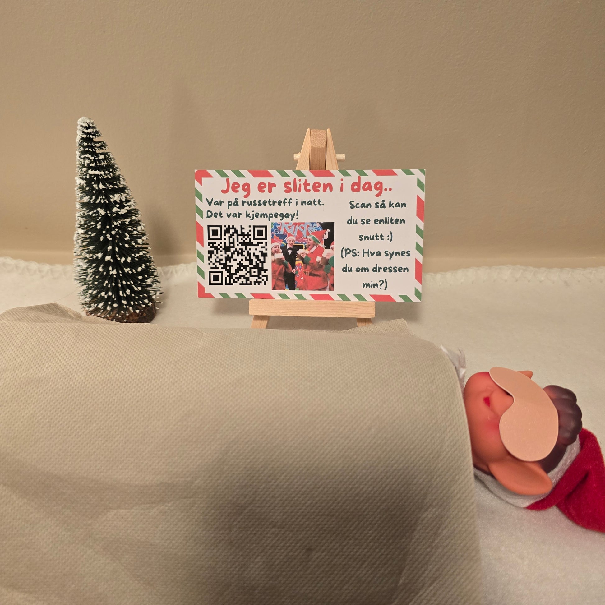 - Skilt med link til AR-video der dere får se en liten snutt fra rampenissens russetreff